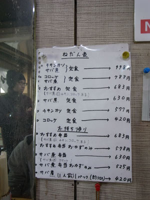 名前通り食堂な作りの店内と殴り書きのようなインフォと品書き。